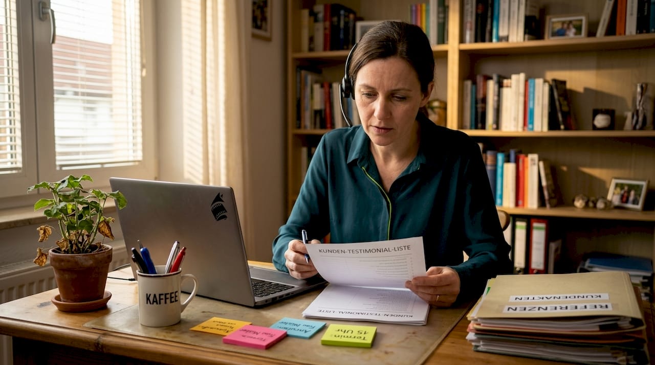 Wählen Sie einen ruhigen Ort mit professionellem Hintergrund. Testen Sie Ton und Licht vorab. Starten Sie mit Smalltalk, um Nervosität abzubauen. Stellen Sie offene Fragen, die Geschichten hervorbringen: "Welche konkrete Herausforderung hatten Sie vor unserer Zusammenarbeit?" oder "Was hat sich messbar verändert?"